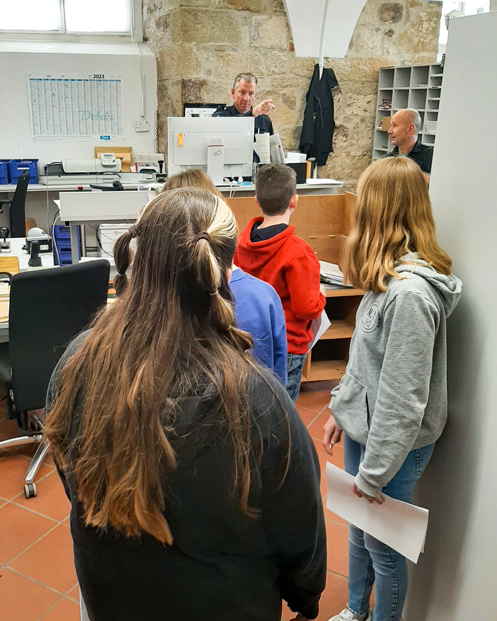Ihr neu erworbenes Justizwissen konnten die Mädchen und Jungen dann bei einer Rallye durch das Amtsgericht direkt anwenden: Das Pfandsiegel des Gerichtsvollziehers wird auch Kuckuck genannt! Bei der Beantwortung der übrigen Fragen halfen alle Mitarbeiterinnen und Mitarbeiter in den Büros gerne weiter.