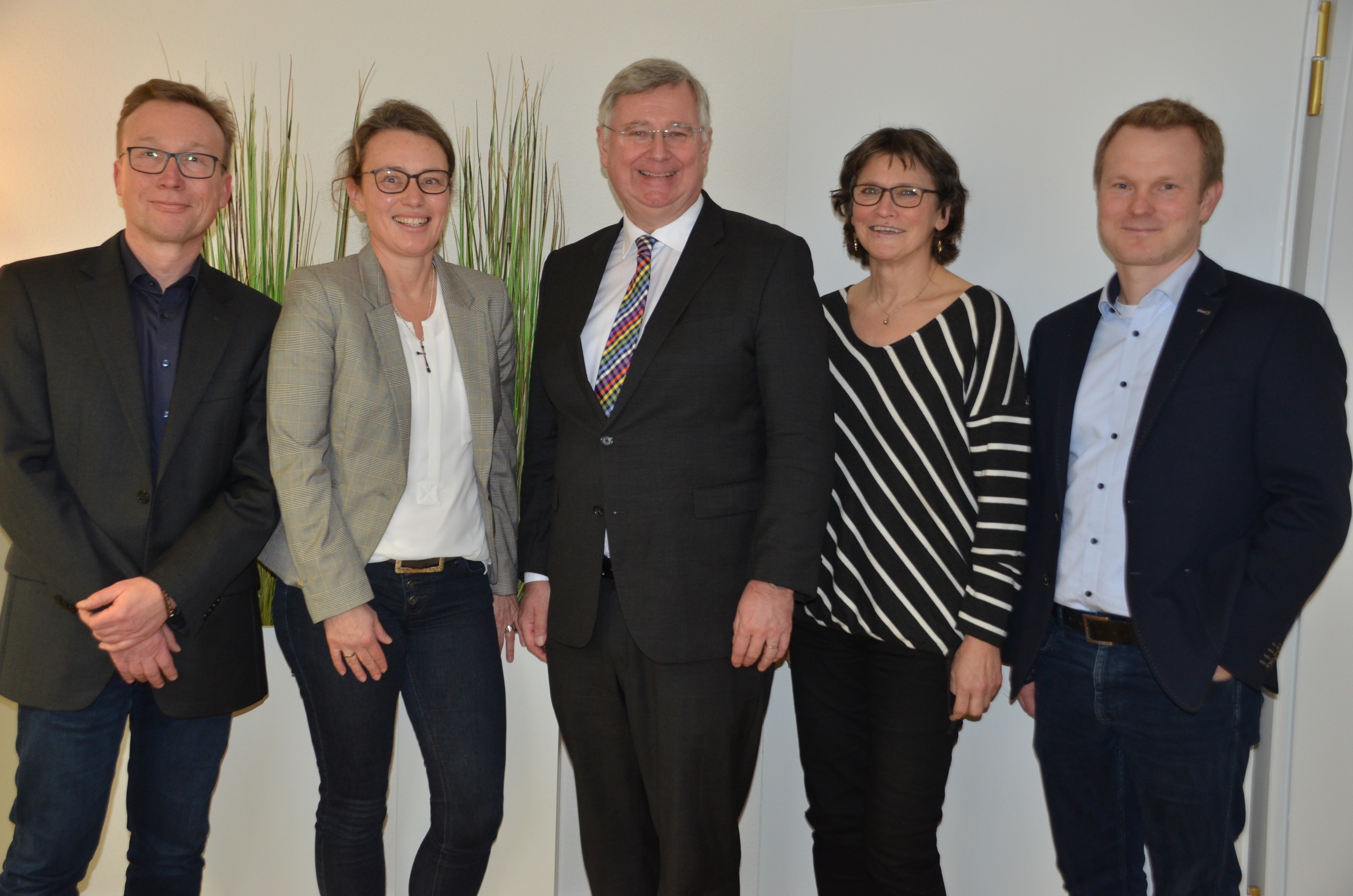 Das Foto (von Irene Rosenzweig) zeigt von links nach rechts: Frank Teckemeyer (stellv. Direktor des Amtsgerichts), Susanne Kirchhoff (Direktorin des Amtsgerichts), Dr. Michael Kodde (Vizepräsident des Oberlandesgerichts Oldenburg), Simone Albers (Vorsitzende des Personalrats), Bernd Pellmann (Geschäftsleiter des Amtsgerichts).