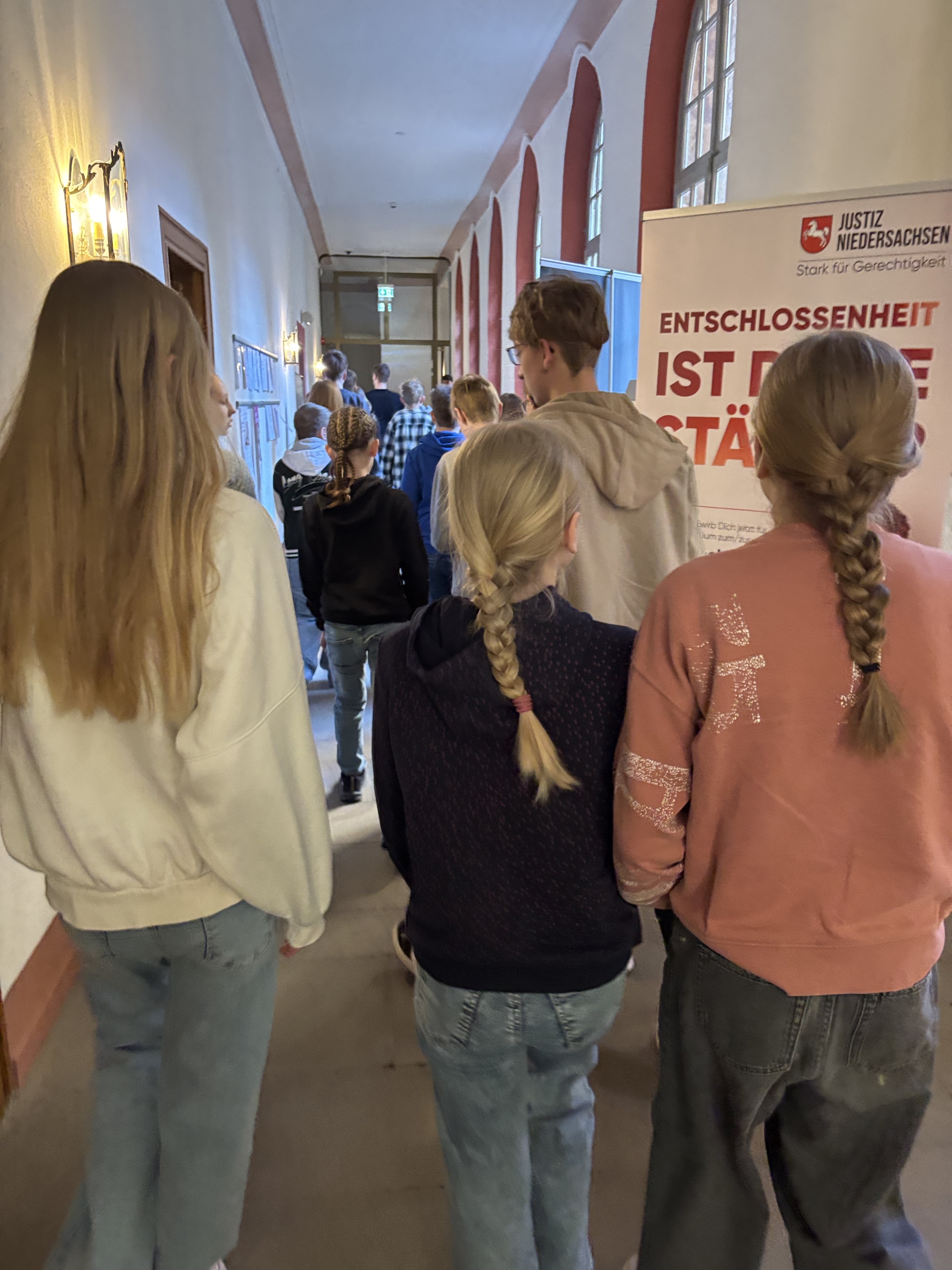 Nach der Begrüßung und Anmeldung begann der Tag mit einer kurzen Einführung in den Ablauf von Strafverhandlungen sowie den Verhaltensregeln im Gerichtssaal. Anschließend verfolgten die Teilnehmenden zwei echte Jugendstrafverhandlungen. In der ersten Verhandlung ging es um Trunkenheit im Verkehr mit einem E-Scooter in Osnabrück, in der zweiten um den Vorwurf der fahrlässigen Brandstiftung am Gymnasium Oesede im Mai vergangenen Jahres – mit einem geschätzten Sachschaden von mehreren Millionen Euro.